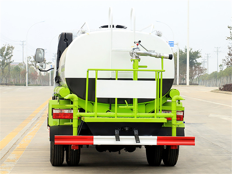 上装部分:罐体用4MM碳钢板制作,罐内隔板具有防波作用,以减低汽车行驶时罐体液体的冲击。整车带一个专用洒水泵(垂直大吸程6米),洒水宽度14米,射程28米。多功能洒水车配备2个前冲(喷)(能将路面泥巴、尘土、垃圾冲干净);2个后洒(能均匀地将水洒在路面,一次洒水宽度14米)、2个侧喷(花洒)(能均匀地将路旁绿化带浇灌)、带1个后工作平台,平台上安装1个绿化洒水高炮(洒水炮可全方位旋转,可连续调成直冲状、大雨、小雨、毛毛雨,雾状可调节冲洗高大树木),引水时间<5min,流量90m3/h。带1个消防接头,带1个自流阀,1个过滤装置、人性化爬梯及侧防护栏,安装洒水音乐喇叭。