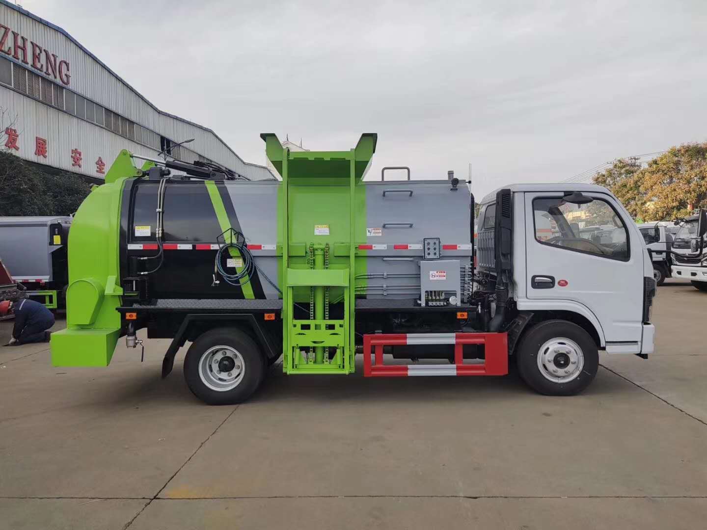 | 整车说明: | 随底盘选装驾驶室。该车辆装有侧装垃圾桶升降装置,封闭式垃圾罐等装置,主要作用于餐厨垃圾收集,转运及卸料作业。整车长/轴距/前悬/后悬对应关系(mm)为:5995/3308/1632;5830/2950/1825;5505/2700/1750;防护材料:Q235A碳钢,连接方式:左右侧面与副梁采用焊接连接,后防护装置由专用装置代替,离地小高度为360mm。ABS型号/厂家:ABS/ASR-12V-4S/4M/襄阳东风隆诚机械有限责任公司。 | ||