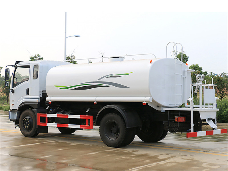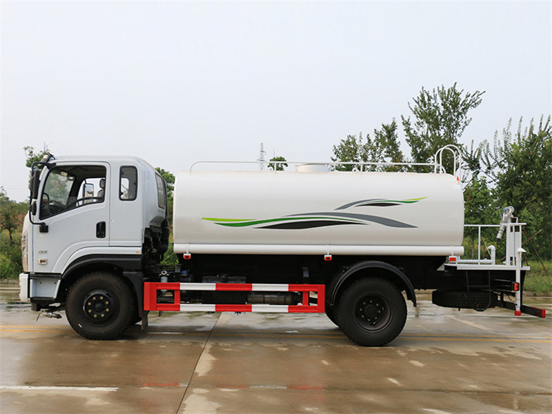 上装部分:罐体用4MM碳钢板制作,罐体油漆采用金属油漆制作,防锈能力强。罐内隔板具有防波作用,以减低汽车行驶时罐体液体的冲击。整车带一个专用洒水泵大功率专用洒水泵,泵可自吸自排,带自流阀,带消防接头,带消防水带,配两根吸水管,带过滤装置,洒水宽度15米,射程28米。多功能洒水车配备2个前冲(喷)(能将路面泥巴、尘土、垃圾冲干净);2个后洒(能均匀地将水洒在路面,一次洒水宽度15米)、2个侧喷(花洒)(能均匀地将路旁绿化带浇灌)、带1个后工作平台,平台上安装1个绿化洒水高炮(洒水炮可全方位旋转,可连续调成直冲状、大雨、小雨、毛毛雨,雾状可调节冲洗高大树木),引水时间<5min,流量90m3/h。带1个消防接头,带1个自流阀,1个过滤装置、人性化爬梯及侧防护栏,安装洒水音乐喇叭。
