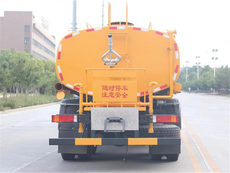 上装部分:罐体用4MM碳钢板制作,罐内隔板具有防波作用,以减低汽车行驶时罐体液体的冲击。整车带一个专用洒水泵(垂直大吸程6米),洒水宽度15米,射程28米。多功能洒水车配备2个前冲(喷)(能将路面泥巴、尘土、垃圾冲干净);2个后洒(能均匀地将水洒在路面,一次洒水宽度15米)、2个侧喷(花洒)(能均匀地将路旁绿化带浇灌)、带1个后工作平台,平台上安装1个绿化洒水高炮(洒水炮可全方位旋转,可连续调成直冲状、大雨、小雨、毛毛雨,雾状可调节冲洗高大树木),引水时间<5min,流量90m3/h。带1个消防接头,带1个自流阀,1个过滤装置、人性化爬梯及侧防护栏,安装洒水音乐喇叭。
