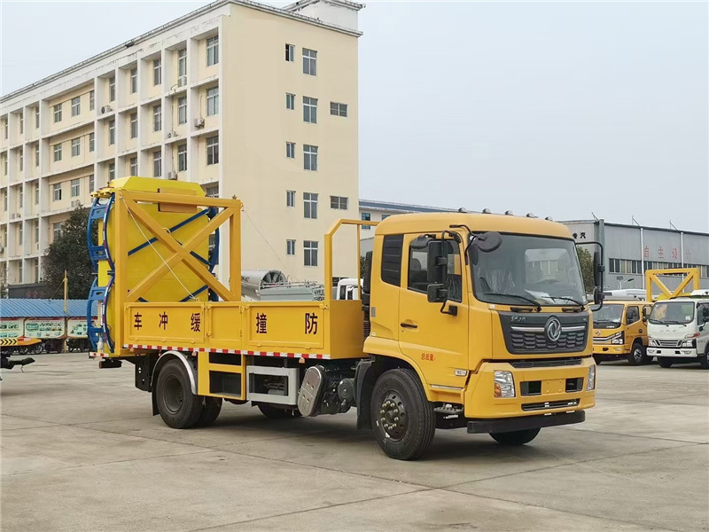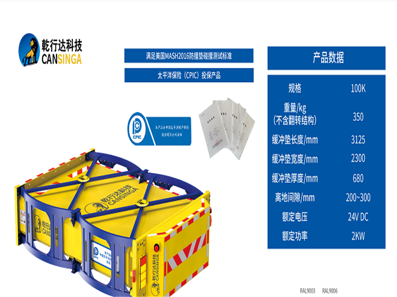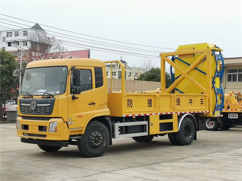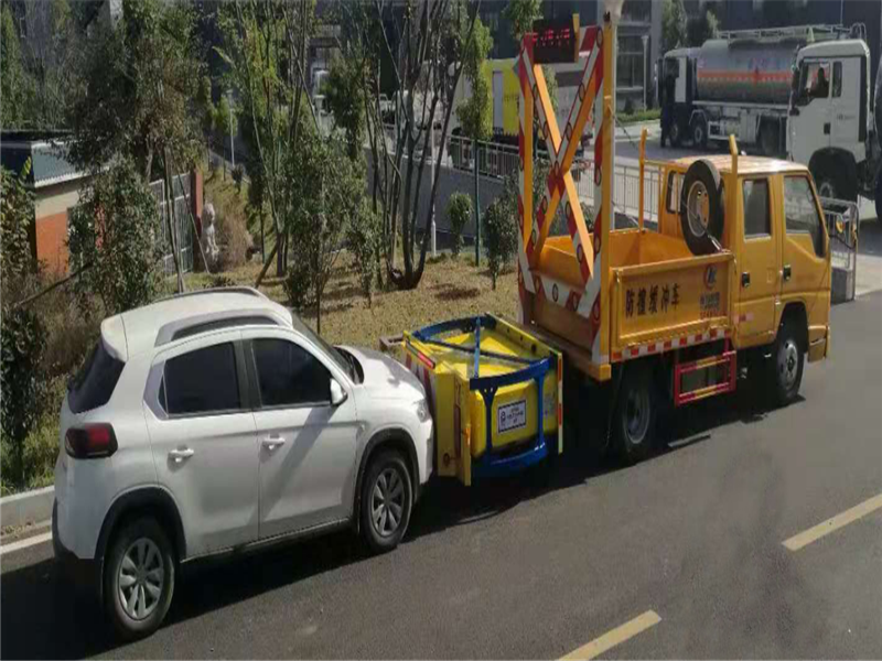 采用Q235国标边3mm底板花纹板4mm厚,箱体后部防撞包采用国内知名公司:深圳市乾行达科技有限公司生产的CANSINGA-TMA 100K型号,高性能液压系统,可实现快速举升和落下操作,方便设备运输转场,一键启动功能,配有定制警示灯,LED警示显示屏,通过美国 NCHRP350TL-2碰撞测试,可吸收2吨重车辆时速70公里/小时的冲击能量,防撞缓冲垫内部由宇航级缓冲材料作为填充物,当有车辆发生意外追尾碰撞时,缓冲材料被压缩变形,进而实现碰撞能量的吸收。